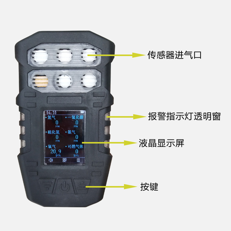 可同時檢測可燃、氧氣、一氧化碳和硫化氫、氨氣、氫氣等六種氣體,并按客戶需要對一種或任意組合多種氣體檢測,檢測結果同時顯示在屏幕上、用戶可隨時啟動手動操作